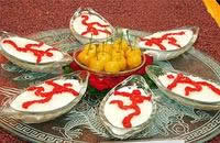 上窯粗條馓子,也稱“油果”、“油面條”。(上窯、洛河一帶較為多見)用面粉、明礬、精鹽、白糖等和成油面,把油面盤擰成網(wǎng)被形,下入油鍋中浸炸定形,成品后有乳白色、淡黃色、金黃色。具有軟、脆、焦、酥、香、鮮、咸、微甜等特點(diǎn)。它可直接食用,也可燴、涮、淡季制餒,可做主料、輔料。
