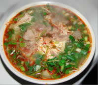 淮南牛肉湯選料講究,取制江淮一帶的黃牛為原料,用牛骨頭熬湯,煮牛肉時(shí)必須浸泡血污,內(nèi)臟清洗干凈,均可下鍋同煮,還用自制的牛油,將炸制好淮椒(紅干椒)做成紅油。牛肉湯故以湯為主,湯不醇則無味,然牛肉湯的燙制方法多樣,都取用當(dāng)?shù)靥禺a(chǎn),淮芋粉、綠豆餅、豆腐皮(干章、百頁)、豆圓子等為輔料。淮南牛肉湯,給人的感覺是:湯濃醇鮮,香辣適口,原料豐富,味足味厚,令人回味無窮,四季皆宜。
