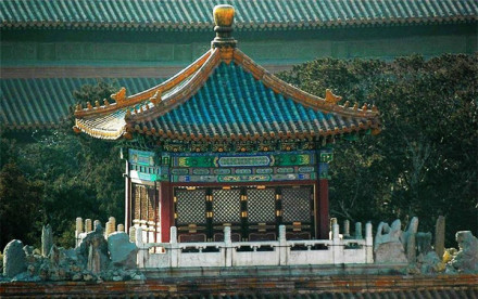 御景亭位于御花園內(nèi)東側(cè)的假山頂上。原是明代觀花殿的舊址,萬(wàn)歷間改堆假山。山的東西山石間各有登道,拾級(jí)而上可達(dá)山頂御景亭。亭子平面方形,四柱,一斗二升交蔴葉斗栱,攢尖頂,上覆翠綠琉璃瓦,黃色琉璃瓦剪邊,鎏金寶頂,四面設(shè)隔扇門(mén)。四周?chē)@著漢白玉石欄板。亭內(nèi)天花藻井,面南設(shè)寶座。御景亭是皇帝、皇后在農(nóng)歷九月初九重陽(yáng)節(jié)登高的地方。自亭上可俯瞰宮苑,遠(yuǎn)眺故宮、景山、西苑。