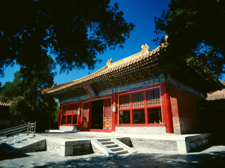 永和宮,內(nèi)廷東六宮之一,位于承乾宮之東、景陽(yáng)宮之南。明代為妃嬪所居,清代為后妃所居。清康熙帝孝恭仁皇后久居此宮。其后,道光帝靜貴妃,咸豐帝麗貴人等先后在此居住。宮為二進(jìn)院,正門(mén)南向,名永和門(mén),前院正殿即永和宮,面闊5間。明間開(kāi)門(mén),次、梢間皆為檻墻,上安支窗。正間室內(nèi)懸乾隆御題“儀昭淑慎”匾,吊白樘箅子頂棚,方磚墁地。東西有配殿各3間,明間開(kāi)門(mén),黃琉璃瓦硬山式頂,檐下飾旋子彩畫(huà)。東西配殿的北側(cè)皆為耳房,各3間。