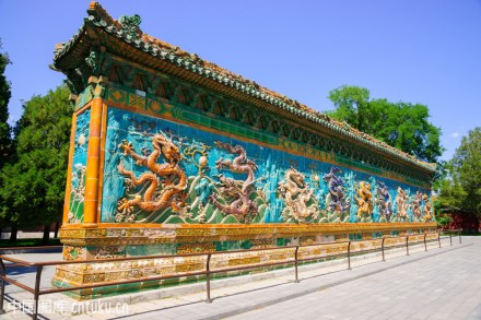 九龍壁位于故宮寧壽宮區(qū)皇極門(mén)外。壁長(zhǎng)29.47m,高3.59m,厚0.459m,是一座背倚宮墻而建的單面琉璃影壁,為乾隆三十七年(1770年)改建寧壽宮時(shí)燒造。