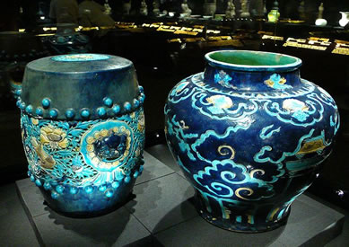 瓷器:北京故宮擁有35萬(wàn)件陶瓷器,包括一級(jí)品1100多件,二級(jí)品約5.6萬(wàn)件,另有從全國(guó)200多個(gè)窯口所采集的3.6萬(wàn)余片陶瓷標(biāo)本。收藏特色尤其體現(xiàn)在三國(guó)至唐五代陶瓷器、元瓷、清中晚期御窯、宮廷陳設(shè)用瓷、紫砂器、多釉彩大型瓷器、清御窯生產(chǎn)資料、歷代民窯瓷器和考古發(fā)掘資料。
