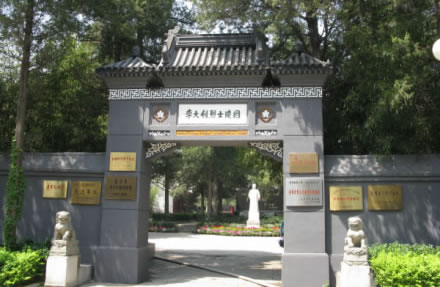 坐落于香山東南的萬(wàn)安公墓內(nèi),占地面積2200平方米,為仿古式庭院建筑。1983年10月29日落成并對(duì)外開(kāi)放。陵園為方形院落,李大釗漢白玉雕像高2米,立于李大釗及夫人趙紉蘭墓前。墓后為寬4米,高2米的紀(jì)念碑。碑陽(yáng)題詞“共產(chǎn)主義運(yùn)動(dòng)的先驅(qū),偉大的馬克思主義者,李大釗烈士永垂不朽”。碑陰是中央為李大釗烈士撰寫(xiě)的碑文。