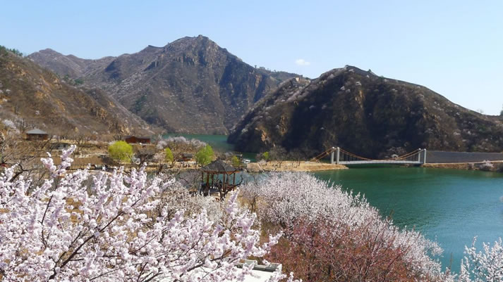 黃花城水長(zhǎng)城 黃花城水長(zhǎng)城位于九渡河鎮(zhèn)境內(nèi),距北京市區(qū)65公里,是以奇而著稱,融山川、碧水、古長(zhǎng)城為一體的旅游休閑勝地。而這里的“ 三絕景 ”更是引人入勝,嘆為觀止。 “一絕”建于明永樂年間的長(zhǎng)城盤旋于山脊之上,環(huán)繞在灝明湖畔,景色秀美壯觀。 “二絕”湖水將長(zhǎng)城自然斷開,形成長(zhǎng)城戲水、水沒長(zhǎng)城的奇特景觀。 “三絕”明代板栗園,古樹盤根錯(cuò)節(jié),形態(tài)各異。那巨龍戲珠之軀和撐掩蒼天之冠,令人贊不絕口。 沿古道、過木橋、涉小溪、跨怪石,上行可達(dá)黑龍?zhí)丁>皡^(qū)還有龍尾洞、紫翠峰、醉女山、石浪谷、情人峰、三珠連潭等自然景觀。 地名由來 因鎮(zhèn)域中部最大村名九渡河而得名。 地方特產(chǎn) 九渡河鎮(zhèn)為懷柔區(qū)板栗、核桃生產(chǎn)基地之一,另有梨、蘋果、柿子、紅果等。 |