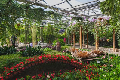 世界花卉大觀園景觀由七大溫室和十五個花園廣場組成。溫室內(nèi)全部采用電腦控制的通風(fēng)、加濕、恒溫、滴灌等新技術(shù),營造出適宜植物生長的環(huán)境,各溫室內(nèi)的植物千奇百怪、花團(tuán)錦簇。熱帶植物館中有數(shù)百年的佛肚樹、重陽木、古榕樹等喬木1800余種;沙生植物溫室有上百種仙人掌、仙人球;精品花卉廳有生動風(fēng)趣的植物生肖園、精品盆景園,電子觸摸屏為您介紹豐富多彩的各國花卉知識;頗具農(nóng)家田園風(fēng)光的蔬菜瓜果園中有重達(dá)150公斤的巨人南瓜;在茗賞百花廳可以賞花品茶;還專門為游人提供了直接參與花卉組培技術(shù)的活動空間和各類娛樂項目。室外景觀有各具特色的百花廣場、凡爾賽花園、水花園、夜花園、花之廣場、花之谷、牡丹園等園中之園;頗具異國風(fēng)情的荷蘭、俄羅斯、德國、奧地利花園讓世界花卉文化和精美的園林藝術(shù)在這里交相輝映,巧妙和諧地融合在一起。
