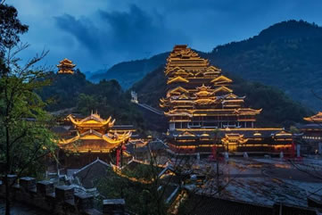 蚩尤九黎城集苗族文化、旅游景區(qū)、游客接待于一體,繼承和延續(xù)了苗族歷史文化、民俗風(fēng)情,重現(xiàn)“九黎之城”歷史風(fēng)貌,是彭水自然風(fēng)光與苗族歷史文化的有機(jī)結(jié)合體,是展示和傳承苗族文化的窗口和基地,彰顯出的是苗族文化的厚重和豐富的內(nèi)涵。