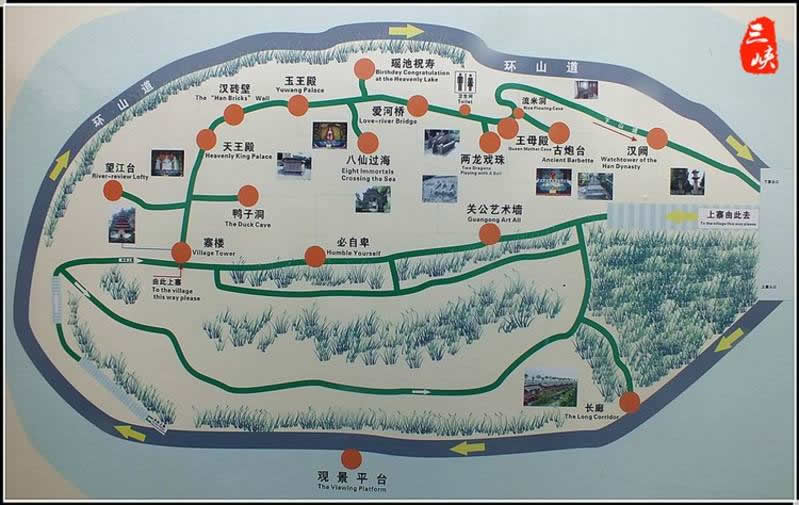 石寶寨古建筑群于明萬歷年間始建,景區(qū)總占地面積5.4萬平方米,建筑面積3486平方米。南臨長江航道,西北側(cè)有后溪河和尖山子,東北與新石寶鎮(zhèn)相望。寨樓山頂海拔211.04米,三峽工程蓄水到175米水位后,石寶寨四面環(huán)水,在巨型圍堤環(huán)繞下,石寶寨成為長江一處大型江中“盆景”,享有長江“小蓬萊”美稱。寨樓依山而建,飛檐展翼,極為壯觀。閣樓共12層,通高56米。寨頂有古剎天子殿,臨巖筑墻、殿宇巍峨、蔚為壯觀,還有文物陳列室和鴨子洞、流米洞、石寶姑娘、老鷹找路等。