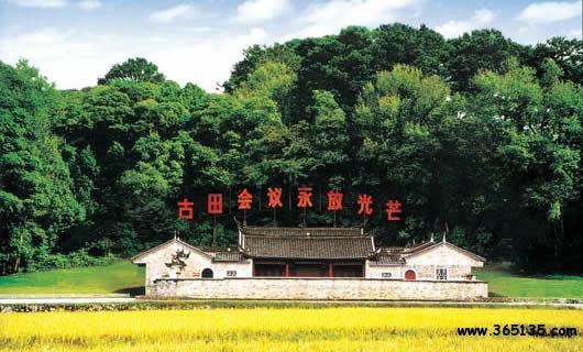 古田會議會址,位于古田鎮(zhèn)溪背村,原系廖氏宗祠,建于公元1848年(清道光二十八年),為四合院式建筑,有庭院、前后兩廳和左右兩廂房,建筑面積為826㎡。1917年,建立古田第一所小學(xué)——“和聲小學(xué)”,1929年5月紅四軍進(jìn)駐古田后把“和聲小學(xué)改名為曙光小學(xué),同年12月28日至29日,由毛澤東同志親自主持的紅四軍第九次代表大會(即古田會議)在這里勝利召開,通過了具有歷史意義的古田會議決議案,確立了思想建黨、政治建軍的指導(dǎo)思想和黨指揮槍的原則,是建黨建軍史上的里程碑,因此該會址先后被評為福建省“十佳風(fēng)景區(qū)之一”、全國第一批重點(diǎn)保護(hù)單位、全國十大優(yōu)秀愛國主義教育基地、全國紅色旅游經(jīng)典景區(qū)以及國家AAAA級旅游區(qū)。