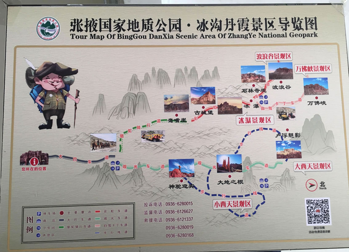 小西天景區(qū)位于冰溝景區(qū)的東部,主要景觀為一條滿布丹武地貌的山溝,均為長(zhǎng)約800米的山體游步道,游覽時(shí)間大約60分鐘。主要景點(diǎn)有神駝?dòng)e、紅層地貌、泥瀑布、泥鐘乳、泥葡萄、桃園結(jié)義(新娘出嫁、樓蘭商駝、千里相會(huì))、玄武門(龜蛇鎖江)、紅纓帽(裕固族帽子)、陰陽(yáng)柱(大地之根)、石雞(筆架峰)、七女峰(侍女拜佛)、僧人崖、金蟾拜佛、大佛石等,最有名氣的有神駝?dòng)e、桃園三結(jié)義、玄武門、蘑菇石、大地之根、七女峰、望夫石等景觀。
