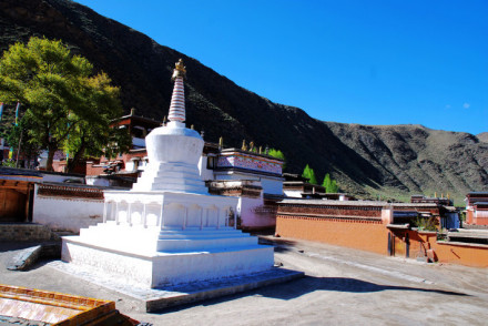 拉卜楞寺尚有藏經(jīng)樓、印經(jīng)院、夏丹拉康、菩提法苑、嘉木樣別墅、銅塔、廚房和牌坊等建筑。藏經(jīng)樓在薩木察倉(cāng)昂欠的西面,內(nèi)藏6萬(wàn)多冊(cè)經(jīng)卷,不幸“文革”中遭到破壞,損失很大,經(jīng)卷移到時(shí)輪學(xué)院,新藏經(jīng)樓已重新建成。印經(jīng)院在千手千眼觀音殿的前面,原屬蒙古河南親王府,藏有大量的經(jīng)版,在“文革”中受到破壞,文革后得到了恢復(fù)和擴(kuò)充,增添了鑄字銅模、鑄字機(jī)、平臺(tái)印刷機(jī)等鉛印設(shè)備。夏丹拉康,在大經(jīng)堂東北隅,是班禪大師行宮。菩提法苑,即為僧人辯經(jīng)場(chǎng)所,位于寺院西邊薩哈爾村南。經(jīng)輪房,俗稱“嘛呢房”,是建造簡(jiǎn)單之平房,圍繞寺周,約500余間,內(nèi)設(shè)經(jīng)輪。菩提塔,為銅質(zhì)鎦金,高三層,甚為珍貴,因位于貢唐倉(cāng)院內(nèi),又稱貢唐塔,另大經(jīng)堂東側(cè)有合離塔,寺院東邊有“神變白塔”。原于寺院東邊,有牌坊1座,上懸“輸財(cái)衛(wèi)國(guó)”匾額1面,現(xiàn)不存。