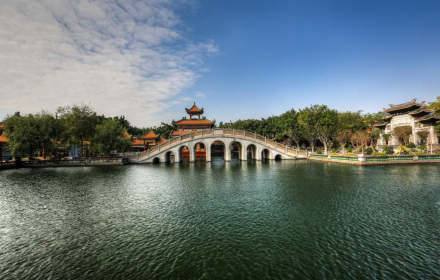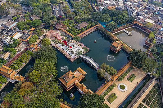 寶墨園位于廣東省廣州市番禺區(qū)沙灣鎮(zhèn)紫坭村,建于清朝末年,占地五畝,因破四舊,文物毀于二十世紀五十年代。于1995年重建,歷時六載,寶墨園經過四期建設,園面積擴至168畝(約10萬平方米),是集清官文化、嶺南古建筑、嶺南園林藝術、珠三角水鄉(xiāng)特色于一體的大型嶺南文化山水園林,是國家AAAA級旅游景區(qū)。