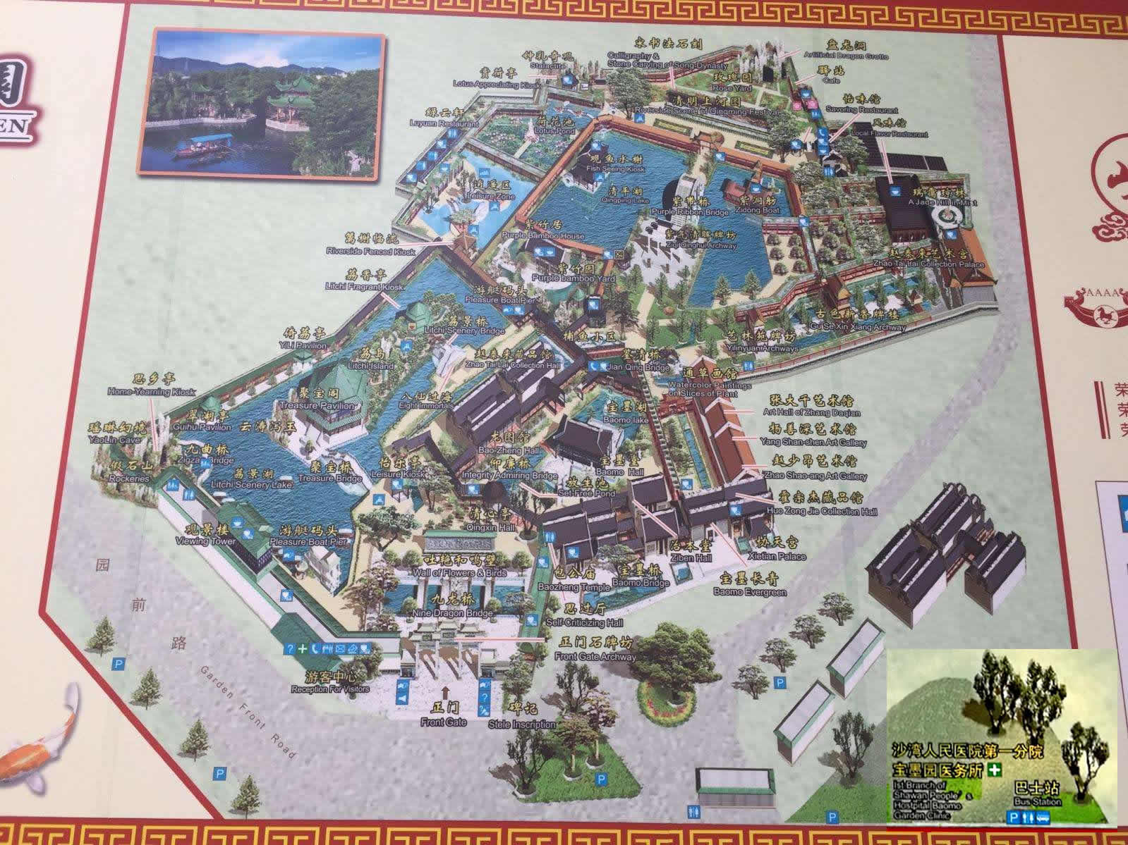 寶墨園更是一座頗具特色的園藝精品公園,除了樹木花卉和建筑之外,園內周邊還有龜池、放生池、錦鯉池、蓮池。