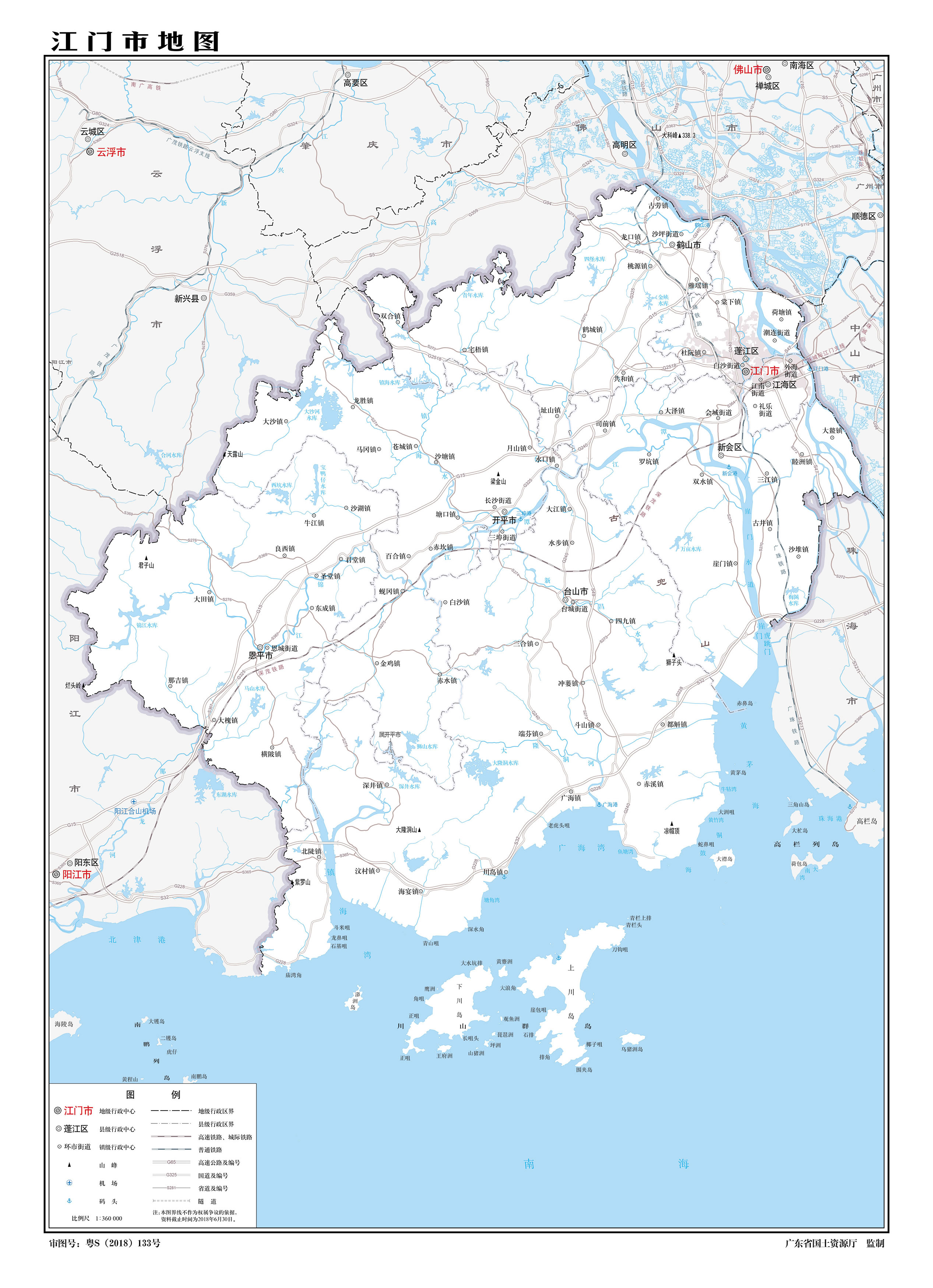 江門市轄3個市轄區(qū)、代管4個縣級市: