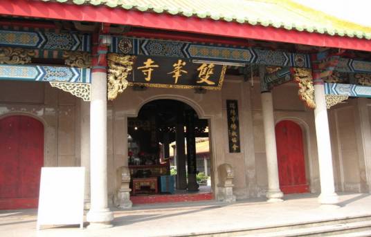 雙峰寺為潮汕地區(qū)現(xiàn)存三大古寺之一,為揭陽市文物保護(hù)單位,位于揭陽市區(qū)馬山巷。始建于宋紹興十年(1140年),舊址在磐溪都雙山(今桂嶺鎮(zhèn)雙山村),為法山禪師所創(chuàng)。明初,石山禪師移建于縣治馬山巷今址,乃粵東地區(qū)一大叢林。是時寺宇壯觀,佛相莊嚴(yán),茂林修篁。擴(kuò)建后規(guī)模宏大,遂與潮州開元寺、潮陽靈山寺并稱“潮汕三大名剎”。后歷經(jīng)兩次擴(kuò)建重修,中國佛協(xié)主席趙樸初為寺宇題匾。重修后寺院呈四合院布局,中軸線上,依次為山門、前廳、大雄寶殿、泰佛殿,有東西兩廊。寺中有歷代文人雅士碑刻歲通,寺中有磚刻五塊,其中虎壽碑最為珍貴。泰佛殿為樓閣式,正殿中金身泰式佛像一座。