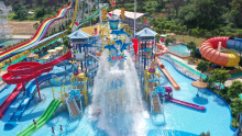 水城的游泳區(qū)由兒童池,標(biāo)準(zhǔn)池和深水池組成。兒童池的水深50cm;標(biāo)準(zhǔn)池深為1.5米;階梯式的深水池分層為深度1.5米和2.5米-3米。更有長達(dá)1000多米,高度落差達(dá)到28米的“九寨水城空中滑道”。