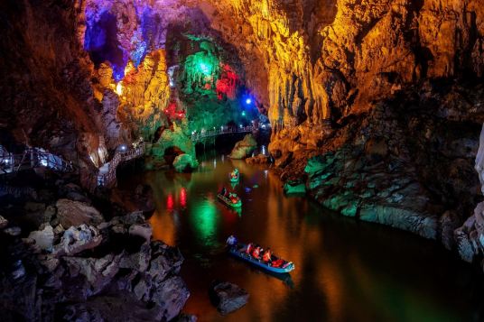 廣西平果通天河景區(qū)又稱“敢沫巖”、“紅軍巖”,是一個(gè)溶洞暗河型景區(qū),位于平果市黎明鄉(xiāng)208省道旁,地處平果平治河巖溶自治區(qū)級地質(zhì)公園核心。通天河景區(qū)于2013年被評為國家AAAA景區(qū)。景區(qū)地理位置優(yōu)越,東距大化紅水河28千米,可連接大化七百弄等景點(diǎn);北距巴馬縣63千米,208省道直達(dá),適合與巴馬連線旅游,可連接“東巴鳳”各景點(diǎn);西可連接百色、德天瀑布、通靈大峽谷等景點(diǎn);南距南寧190千米,可連接南寧、北海等景點(diǎn)。
