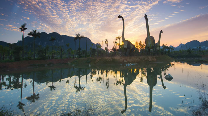 龍谷灣恐龍主題公園是國家AAAA級旅游景區(qū),位于扶綏縣上龍大道999號,距南友高速公路扶綏出口3公里。占地面積3000畝,是龍谷灣旅游休閑度假區(qū)的一期工程,于2017年元旦建成開業(yè)。公園由遠古呼喚、多媒體體驗中心、動感地帶、兒童王國、恐龍谷等板塊組成,是集科普研學、旅游觀光、游樂體驗為一體的亞洲最大的恐龍主題公園。龍谷灣旅游休閑度假區(qū)瞄準“3.5小時經(jīng)濟圈”休閑度假市場,突出恐龍文化和壯族民俗文化,規(guī)劃建設主題公園、特色小鎮(zhèn)、商業(yè)綜合體、田園綜合體、康養(yǎng)旅居城、體育旅游、智慧旅游、國際教育、民宿、汽車旅游營地等,形成龍谷灣恐龍公園、國際慢生活商業(yè)中心、錦繡八桂田園綜合體、國際酷玩休閑世界、國際共享康養(yǎng)旅居城五大區(qū)域。