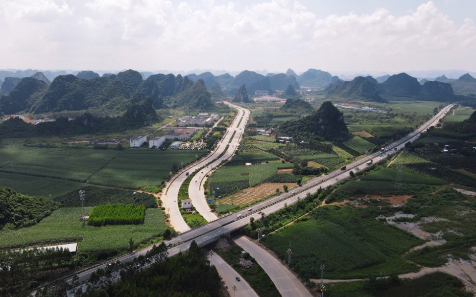 地形地貌 扶綏縣境地勢南北高,中間低,由西向東傾斜。南部和北部是高山土嶺,峰叢谷地,中部為低丘臺地,間有孤峰。巖溶地層分布很廣,約占全縣土地面積的三分之二。