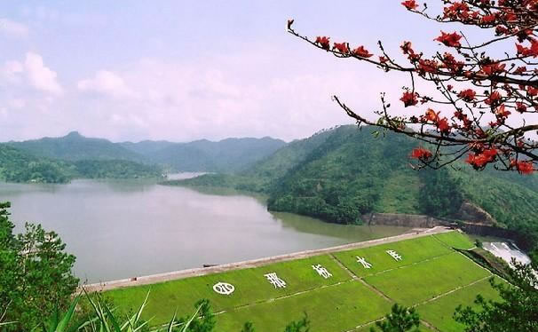 那板水庫,位于上思縣城東南約4千米處,建于1960年9月份,總庫容7.2億立方米,庫區(qū)正常水面約4350畝,從壩首至平江農(nóng)場25千米,水里寬窄相間,曲折縈回,山清水秀。距壩首5千米處西南側(cè)的獨秀山清水秀一峰突起,尖如筆,有“千尋凌漢表,一點聳云端”之謂,為庫區(qū)一奇景。