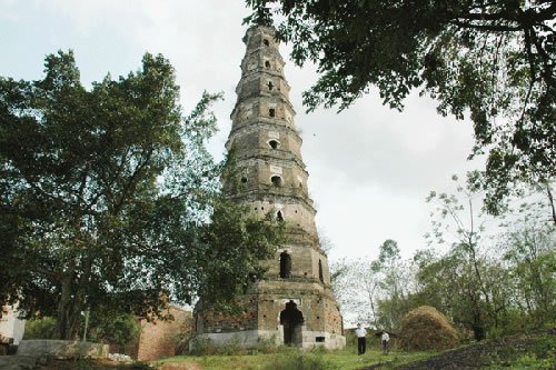 貴港市城東五里的羅泊灣,形如蘿卜,因而原名蘿卜灣。灣上有一座巍峨古塔,名曰安瀾,又曰漪瀾,塔高九層約30多米,底層周長36.62米,墻厚1.9米,塔身呈八角形,共有35個形狀不同的窗口,坐南向北臨江而立,建筑風(fēng)格非常獨特。此塔建于清嘉慶二十三年(1818),已經(jīng)有200多年。昔日登塔可望江城,江中百舸爭流,浪擊飛舟,城上高樓林立,車水馬龍,人來人往,無限風(fēng)光在塔峰。此塔遭受過無數(shù)次特大洪水的沖撞和雷電轟擊,仍巋然不動,穩(wěn)如泰山,塔頂?shù)耐咂坏袈,塔身沒有毀損,保留全貌。