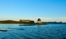 九凌湖位于覃塘區(qū)石卡鎮(zhèn)西面,始建于上世紀(jì)五十年代。距市區(qū)約14千米,湖總?cè)萘?850萬立方米,有效容量1282萬立方米。水庫原為九口長年不竭的流泉匯聚成一條小河,故稱九凌;在九凌東面約半華里處又有五泉匯人,共十四凌,但人們還是喜歡久久長長,仍取其名為九凌。湖建成后,水面面積9999畝,平均水深2.12米。湖水冬暖夏涼,年平均溫度在16—20~C之間,既宜游泳,又宜蕩舟。湖中還有占地近1畝的湖心島,島上建有“九龍亭”,這是別具匠心的構(gòu)建。