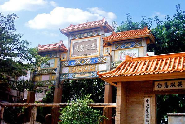 平南縣城東七十里的白馬圩風景區(qū)。該處有明督師袁崇煥故里和南漢梁嵩狀元廟遺址。梁嵩為五代南漢時人,經苦學考取狀元及第,仕至翰林學士,因不滿虐政,辭官歸里,過白馬東濠河溺歿,州人感其請蠲免龔州丁賦之德,立廟以祀。袁崇煥詔授兵部尚書兼三邊總制時,曾在家鄉(xiāng)平南白馬建有“總制三邊坊”。1986年,在白馬圩重建改建了“袁崇煥總制三邊坊”和“梁嵩紀念館”,與巍巍辰嶺,悠悠碧水,互相輝映,殊為壯觀