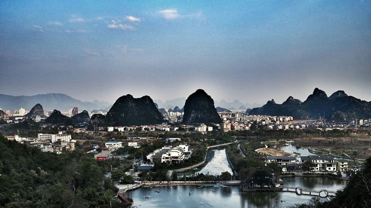 地形地貌 七星區(qū)地形東高西低,北高南低,地勢低平,盆地呈南北延伸狀,自北向南微傾斜,最高點為堯山主峰,海拔909.3米;主要地貌類型包括峰林平原、孤峰平原為主的巖溶地貌和構造一侵蝕低山丘陵地貌。按巖石類型可分為巖溶地貌和非巖溶地貌,此外還包括漓江沿岸的流水侵蝕一堆積地貌。