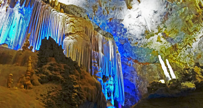 水晶宮位于縣城西北的那社鄉(xiāng)大洛村牛洞屯,距縣城約等43千米,交通便利。水晶宮發(fā)育在峰叢洼地谷地巖溶地貌區(qū),地形起伏大,洞口位于巖溶峰簇的山坡上,高出現(xiàn)代侵蝕面約150米。 水晶宮以潔白純凈、密集分布的石毛發(fā)、卷曲石、石花等景觀為顯著特色,珍惜景觀。洞內空氣負氧離子含量很高,達到每立方厘米36000-70000個,為洞外的5-10倍。 水晶宮為廊道狀的中型洞穴,洞穴基本上順巖層層面面發(fā)育,除數(shù)處大廳外,總體上洞道高低起伏不大。據(jù)初步調查,水晶宮的長度總長度1000多米,寬8至50米,高10至80米。洞底局部有軟式和細沙土沉積物。水晶宮內的鐘乳石類有重力水趁機累的鵝管、鐘乳石、石筍、石柱、石帶、石旗和各類石幔、石瀑布、石盾等;非重力水晶沉積類的石毛發(fā)、卷曲石、石花等數(shù)十種,形態(tài)多彩多姿,雪白純凈,玲瓏剔透,集天下藝術珍品于一洞,且正在生長之中,極具觀賞價值和科學探究價值。
