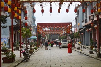 舊州主街長度約三百米,是舊州古鎮(zhèn)的主干道,也是本地民間各類民俗慶典活動的主要舉辦場地——如每年大年初一的舞龍舞獅、二月初二龍?zhí)ь^、八月初二的祭神長桌宴等。主街繡球陣共由99根紅柱,666個繡球組成,寓為“長長久久,六六大順”!