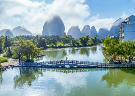 文昌閣下銜鵝泉河,背椅火焰峰,是廣西旅游最具代表性的文化地標之一,是游客來到靖西必去的攝影打卡圣地。