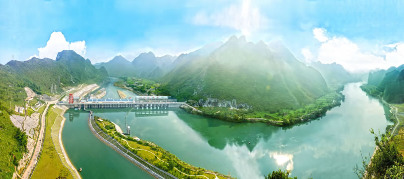 樂灘(惡灘)水電站庫區(qū)的紅水河源出于云南省沾益縣的南盤江,經(jīng)貴州流入廣西,是廣西以壯族為主體的少數(shù)民族的母親河、太陽河。紅水河是中國少有的水電資源。正在擴(kuò)建中的樂灘(惡灘)水電站預(yù)算投資39.7億元,裝機(jī)容量為60萬千瓦,年均發(fā)電量為35億千瓦時,是紅水河上的十個梯級水電站之一。