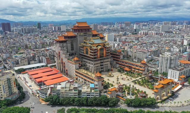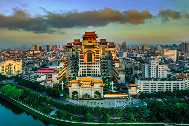 云天文化城又稱云天宮,位于玉林市江濱路,南流江畔。是一座以濃縮中國古今傳統(tǒng)文化和著名建筑風(fēng)格為一體的巨型仿古宮殿式建筑。占地面積為14萬平方米,主體建筑高21層共108米。云天文化城以石雕、木雕、鑄銅三大系列藝術(shù)性的呈現(xiàn)中華名族的歷史文化,以創(chuàng)新的手法為中國上下五千年的文化做傳承。點睛之作是六樓閣樓高30米,重達600噸用1千多片銅片組成的硫金鑄銅工藝品“皆大歡喜”。