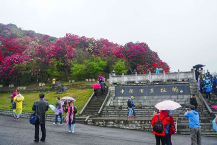 百里杜鵑風(fēng)景名勝區(qū),冬無嚴(yán)寒,夏無酷暑,暖溫帶濕潤季風(fēng)氣候,年平均溫度11.8°C,年降雨量為1150.4mm。生長在高海拔、低緯度的杜鵑花,暮春三月,竟相怒放,繁花似錦,姹紫嫣紅。