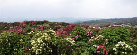 初步查明,百里杜鵑風(fēng)景區(qū)有馬纓杜鵑、大白花杜鵑、水紅杜鵑、露珠杜鵑等41種,占世界杜鵑花5個(gè)亞屬中的全部;ㄉ鄻,絢爛生輝。每年3月到5月次第開放,百里花山色彩繽紛,猶如廣袤的錦緞華章鋪山蓋嶺,百態(tài)千姿。被譽(yù)為“地球彩帶、世界花園”。