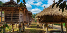 禾倉是瑤山古寨標志性的歷史古建筑,有的禾倉已存在上百年。禾倉建筑獨特,用四柱支撐,上層墊以木板,周圍用竹籬笆圍成圓形,頂上蓋以毛糙,這些禾倉里面用來存放糧食和貴重物品,具有防潮、防盜、防鼠的功能。禾倉下面通常會放置一些生產(chǎn)工具,或者供寨上的人們聚會聊天。