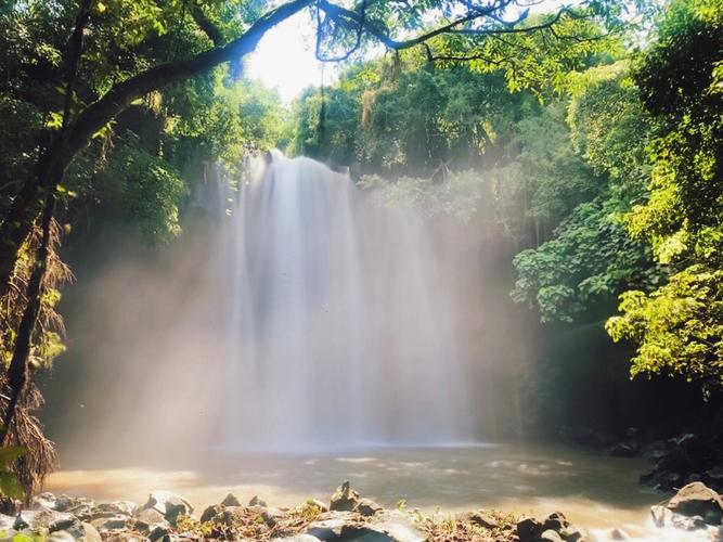 臨高古銀瀑布位于海南臨高縣皇桐鎮(zhèn)居仁村西部附近,距縣城以東20公里。史稱“古銀瀑布”,這一個(gè)大潭,有“三潭九曲”之美稱。瀑布系平川落差而致,落差20米,幅面20米,幅寬400平方米;周圍怪石林立,形狀各異,千姿百態(tài)。后面樹木茂密,宛如碧海,屹立在怪石上,枝繁葉茂,覆蓋如亭。錯(cuò)節(jié)盤根,透出倔強(qiáng)的生命力。處處花香鳥語不斷 。