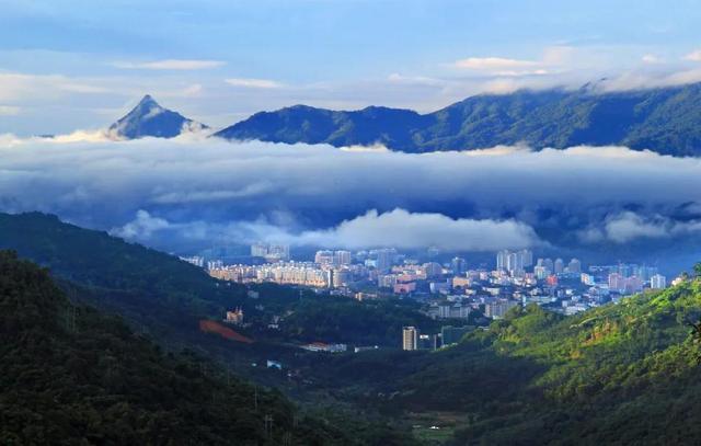 五指山市,猶如鑲嵌在五指山區(qū)綠濤上的一塊翡翠,街道兩旁菠蘿蜜、椰子樹和鳳凰樹紅綠相映,美麗的南圣河像條銀白色的飄帶繞著山城而過。此地冬暖夏涼,清晨涼風(fēng)習(xí)習(xí),霧鎖山城;午間云開霧散,陽光普照;午后烏云聚合,大雨傾盆,往往出現(xiàn)“東邊日出西邊雨”的奇異景觀,飄帶似的彩虹點(diǎn)綴天空。五指山還是黎苗傳統(tǒng)文化歌舞及工藝品創(chuàng)作和表演的主要基地,民族風(fēng)情原始、古樸、濃郁,別具特色的賓館、黎村苗寨而吸引了大量游人,是海南省每年“三月三”黎苗民族傳統(tǒng)節(jié)日慶典的主要場所。