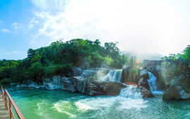 夢幻谷是熱帶雨林中溝谷瀑布的代表,在縱深1.2千米、落差200米的熱帶雨林溝谷內(nèi),有迎賓瀑布、天門瀑布、連恩瀑布三個(gè)水位、落差不同的瀑布,與樹、石、溪等構(gòu)成一個(gè)“夢幻”地帶,在夢幻谷棧道上可觀瀑布、聽鳥叫蟬鳴。