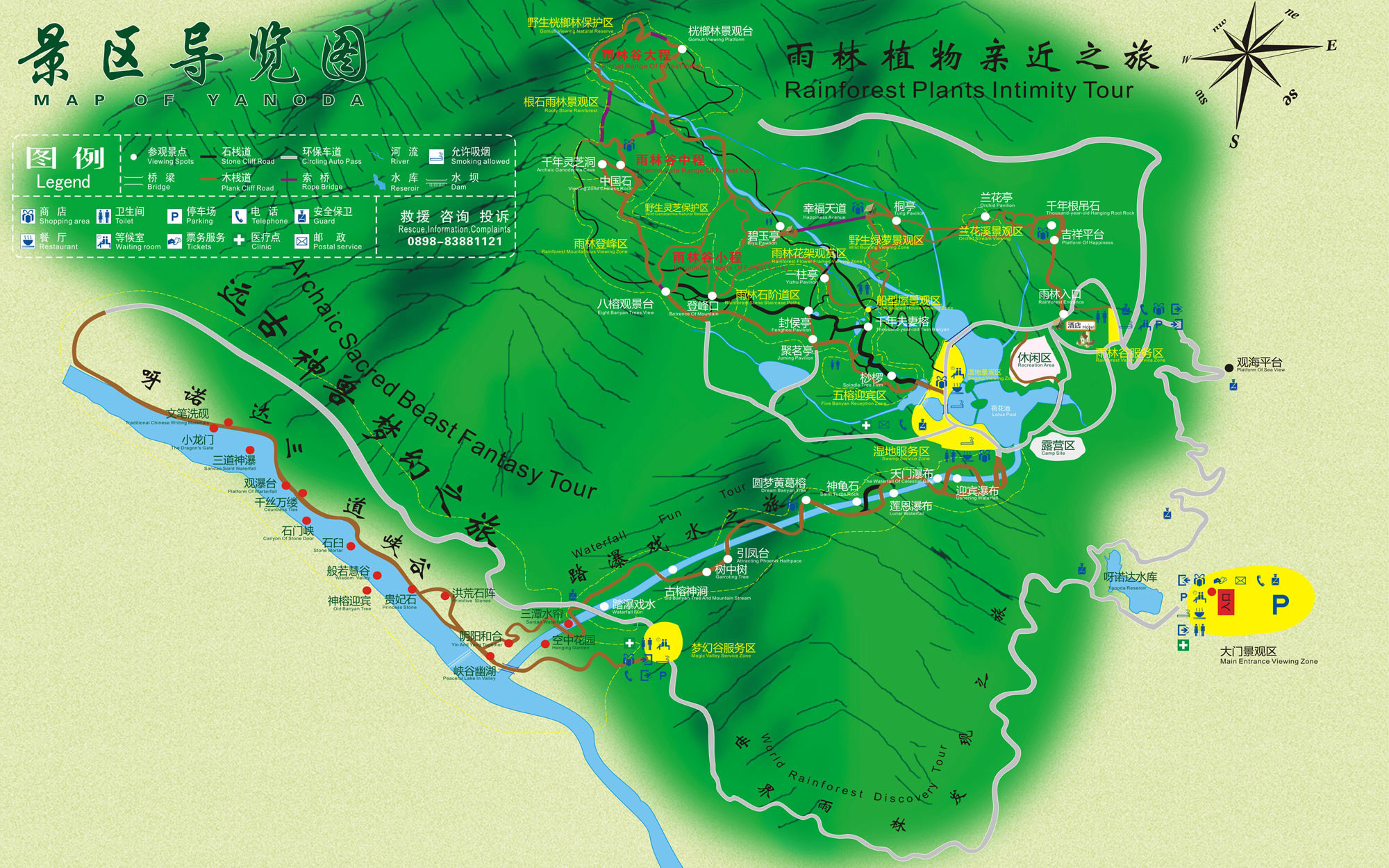 “游山玩水路線”(全程4—5小時(shí)):首先抵達(dá)游客中心,乘坐電瓶車抵達(dá)夢幻谷,體驗(yàn)踏瀑戲水項(xiàng)目,游覽雨林谷,探尋雨林六大奇觀,體驗(yàn)懸崖觀海秋干、哇哎嚕玻璃觀景平臺、魔鬼秋千,最后乘坐雨林巴士返回大門景觀區(qū),打卡冰雪奇境。 |