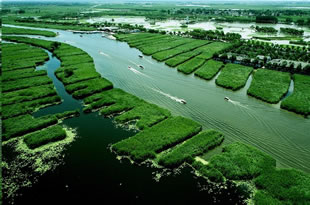 安新白洋淀景區(qū)的地形地貌是由海而湖,由湖而陸的反復(fù)演變而形成的,白洋淀的水域構(gòu)造獨(dú)特,它既有異于中國(guó)南方的內(nèi)陸湖泊,又不同于北方的人工水庫(kù),它不是連在一起的一片汪洋,而是由多條河流將各個(gè)淀泊連在一起,從而形成河淀相連,蘆蕩蓮塘星羅棋布,一個(gè)個(gè)淀泊既相互分割又相互聯(lián)結(jié)的布局。