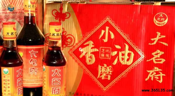小磨香油:始創(chuàng)于清緒年間,以芝麻為原料,用石質(zhì)小磨和獨特的傳統(tǒng)技藝加工而成,品味純正,居食用油之首。目前,大名府上萬座小磨香油作坊遍布全國,飄香華夏,可謂“大名小磨香油,油香磨小名大”。全縣擁有40余個小磨香油專業(yè)村,7500多具香油專業(yè)戶,年產(chǎn)值達7億元。大名縣已成為全國香油名氣最大、銷售量最多、銷售范圍最廣、從業(yè)人員最多的小磨香油 加工縣。為更好地發(fā)揮“大名府香油”這一品牌效應(yīng),實現(xiàn)產(chǎn)業(yè)化經(jīng)營,規(guī);芾恚睒s大名市場,搞活商貿(mào)流通,拉動經(jīng)濟發(fā)展。該縣擬在迎賓大街北側(cè),215省道西側(cè),建設(shè)大名縣香油城項目,項目總投資約1億元人民幣,建設(shè)規(guī)模為占地300畝,建筑面積約8萬平方米。共分為四個區(qū),分別是:物流中心區(qū)、香油產(chǎn)銷區(qū)、糧油營銷區(qū)和管理服務(wù)區(qū)。香油加工區(qū)建設(shè)兩棟現(xiàn)代化生產(chǎn)車間,其余建成前店后廠,下店上住的商品樓,糧油營銷區(qū)全部建成前店后廠,下店上住的商品樓。