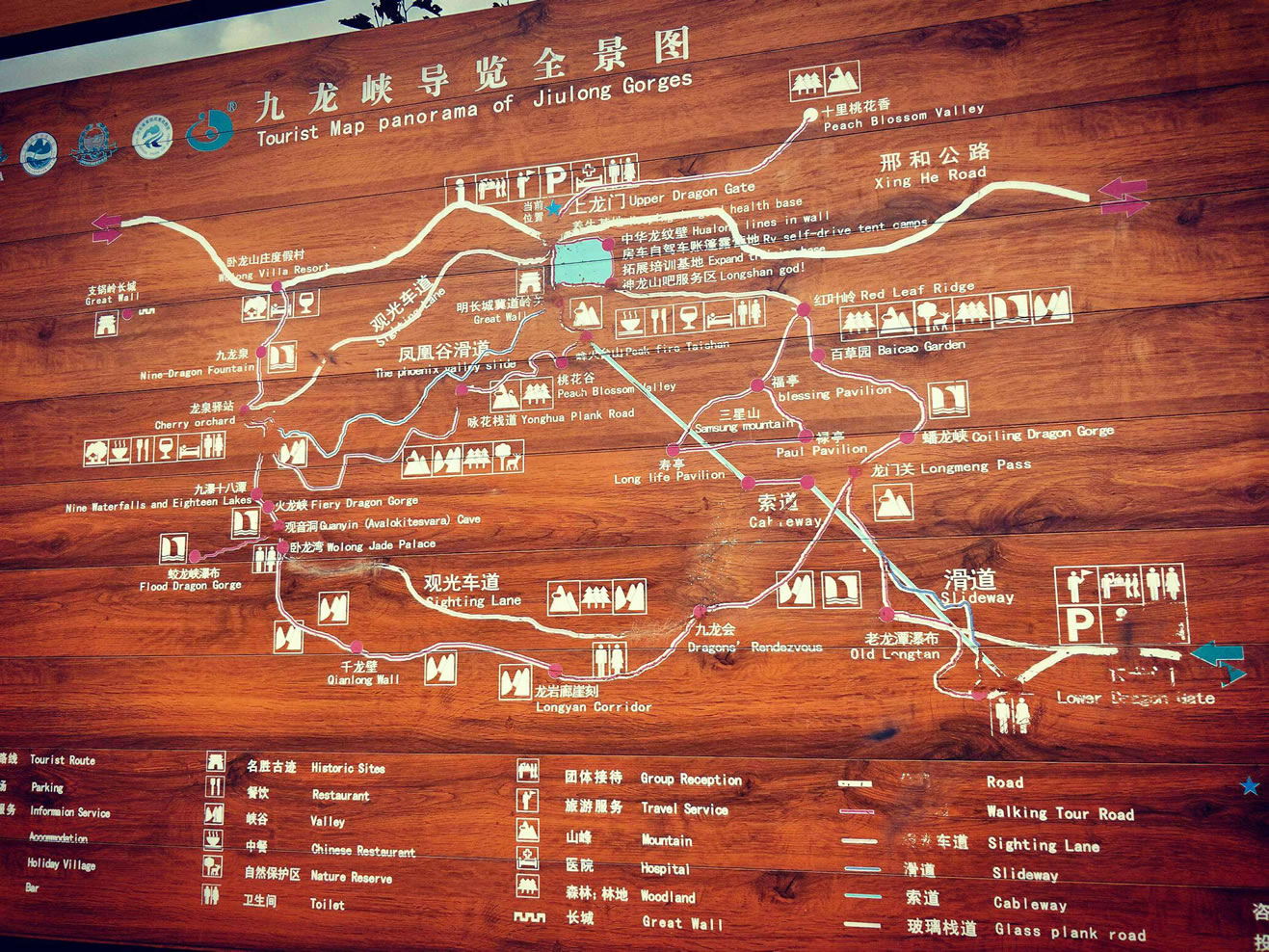 觀景平臺(tái):位于頂部大門(mén)下方十幾米處的一處臺(tái)梁,經(jīng)人工平整而成,南北長(zhǎng)60多米,東西寬20多米。可從此處向下俯覽九龍峽峽谷,步游道由山下經(jīng)此到頂部出口。