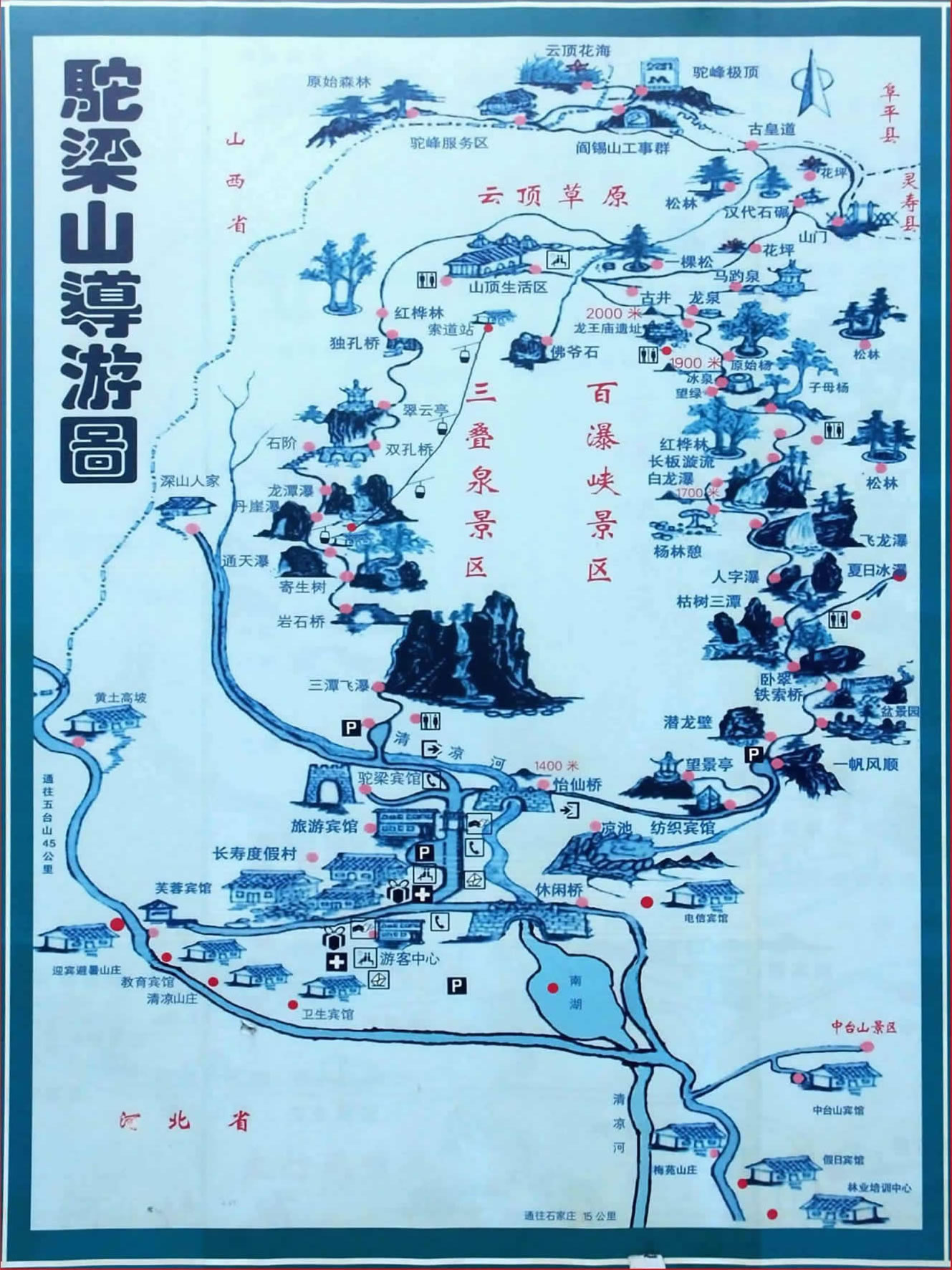 駝梁是連接西柏坡和五臺(tái)山圣地最便捷的中轉(zhuǎn)景區(qū)。來這里旅游不僅能充分領(lǐng)略大自然的韻律和景致,盡情體驗(yàn)典型的太行民俗風(fēng)情,還可留宿山莊內(nèi)賓館、高檔別墅或長(zhǎng)壽度假村,品位特有的綠色食品莜面、烙餅、大鍋菜,是舉辦居家游情侶游、科考游、生態(tài)游等和登山游等避暑覽勝的極佳去處。