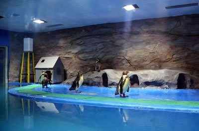 秦皇島新澳海底世界總建筑面積約2萬平方米,總儲(chǔ)水量約650萬千克。景區(qū)主要由水族館和海豚表演館兩部分組成,其中,水族館主要包括小池區(qū)、企鵝館、海豹館、觸摸池、海底隧道、表演區(qū)、科普展廳、科普教室以及海洋精品店等部分組成。