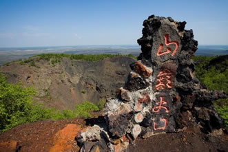 五大連池地區(qū)火山群海拔高度為400米~600米,以火山錐的特殊結(jié)構(gòu)、各種火山熔巖流動形跡、結(jié)滿冰霜的熔巖隧道,以及冷碳酸礦泉而聞名于世。