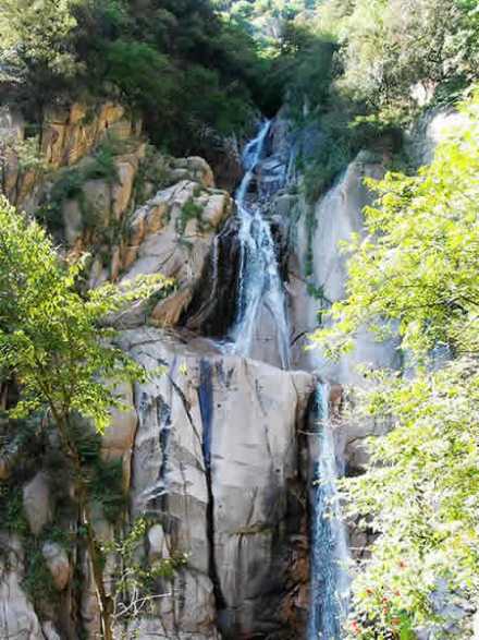 六疊瀑是畫眉谷景區(qū)秀美飛瀑之一。它是巖層斷裂并流水長年下切侵蝕形成的多級(jí)瀑布,分六級(jí)跌落,故名“六疊瀑”。