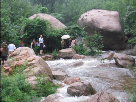 元寶潭元寶潭是畫眉谷景區(qū)的第一個(gè)景點(diǎn)。元寶潭是因潭中有一 個(gè)形似元寶的石頭而得名。此石是由斷裂破碎的花崗巖體經(jīng)長年水流下切侵蝕而成的。關(guān)于這元寶潭還有一個(gè)動(dòng)人的傳說。傳說有盜寶者在山中盜得元寶外逃至此,被鎮(zhèn)山神指定住,寶落潭中。至今元寶仍在潭中,成為畫眉谷旅游的一道亮麗風(fēng)景。