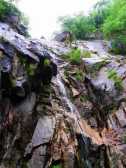 六疊瀑布中以第三級(jí)形似蓮花洞穴的蓮花瀑、第四級(jí)猶如飛珠濺玉的飛玉瀑及第五級(jí)恰象仙女洗浴的浴女瀑最為奇特壯觀。六疊瀑之下,有神龜潭。右側(cè)絕壁為仙掌峰,節(jié)慶之日,常有鑼鼓叮當(dāng)之聲。
