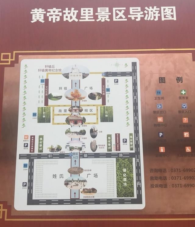 中華姓氏廣場(chǎng)、黃帝鼎壇、漢闕、故里祠、黃帝像、軒轅橋、黃帝紀(jì)念館
