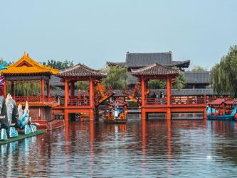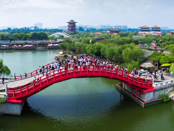 清明上河園是中國(guó)著名八朝古都河南開封的一座大型歷史文化主題公園,占地600余畝,坐落在開封城風(fēng)光秀麗的龍亭湖西岸。